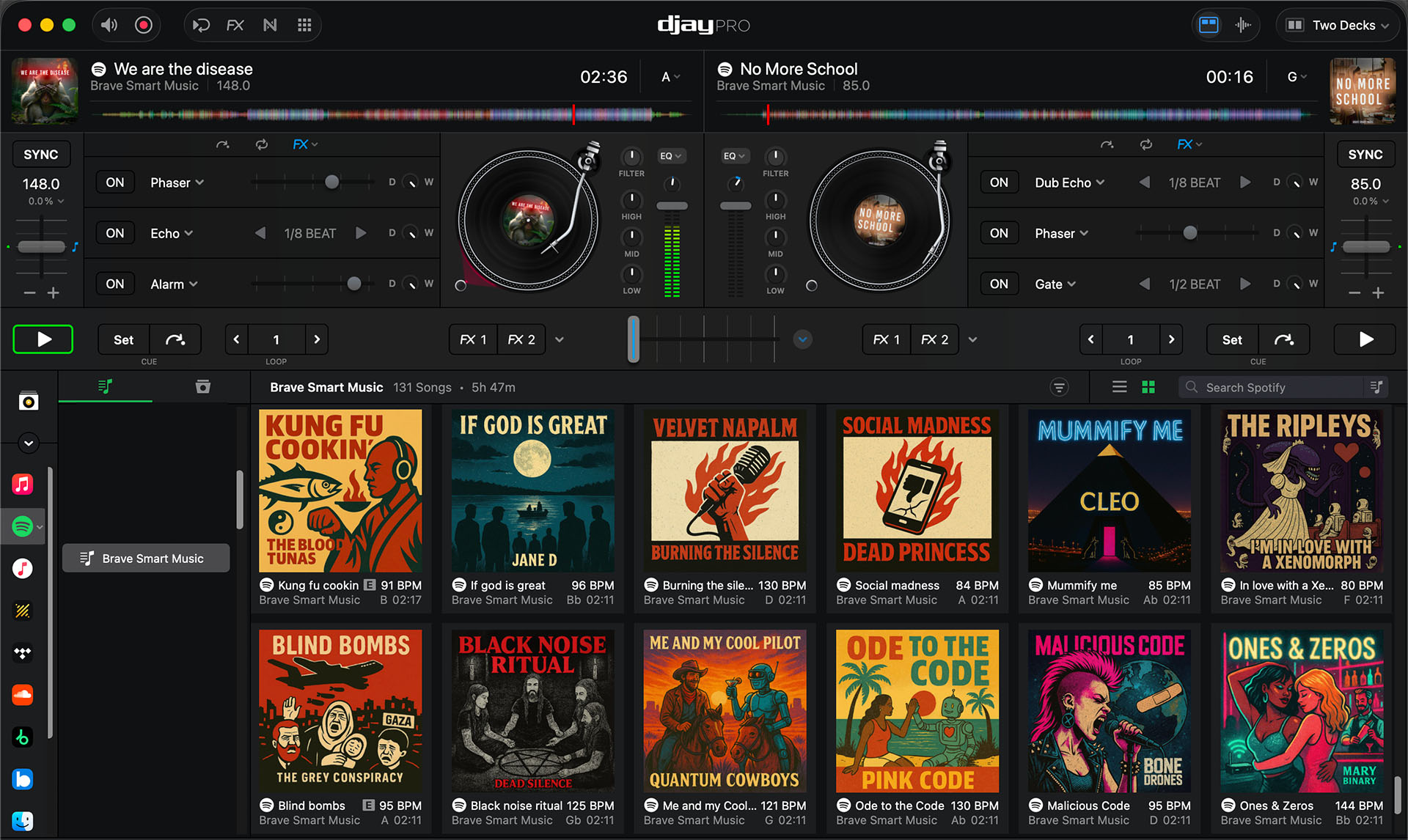 Brave Smart Live — live DJ/VJ performances using exclusively original Brave Smart Music productions. Every track original. Every visual original. The HumAi catalogue performed live.